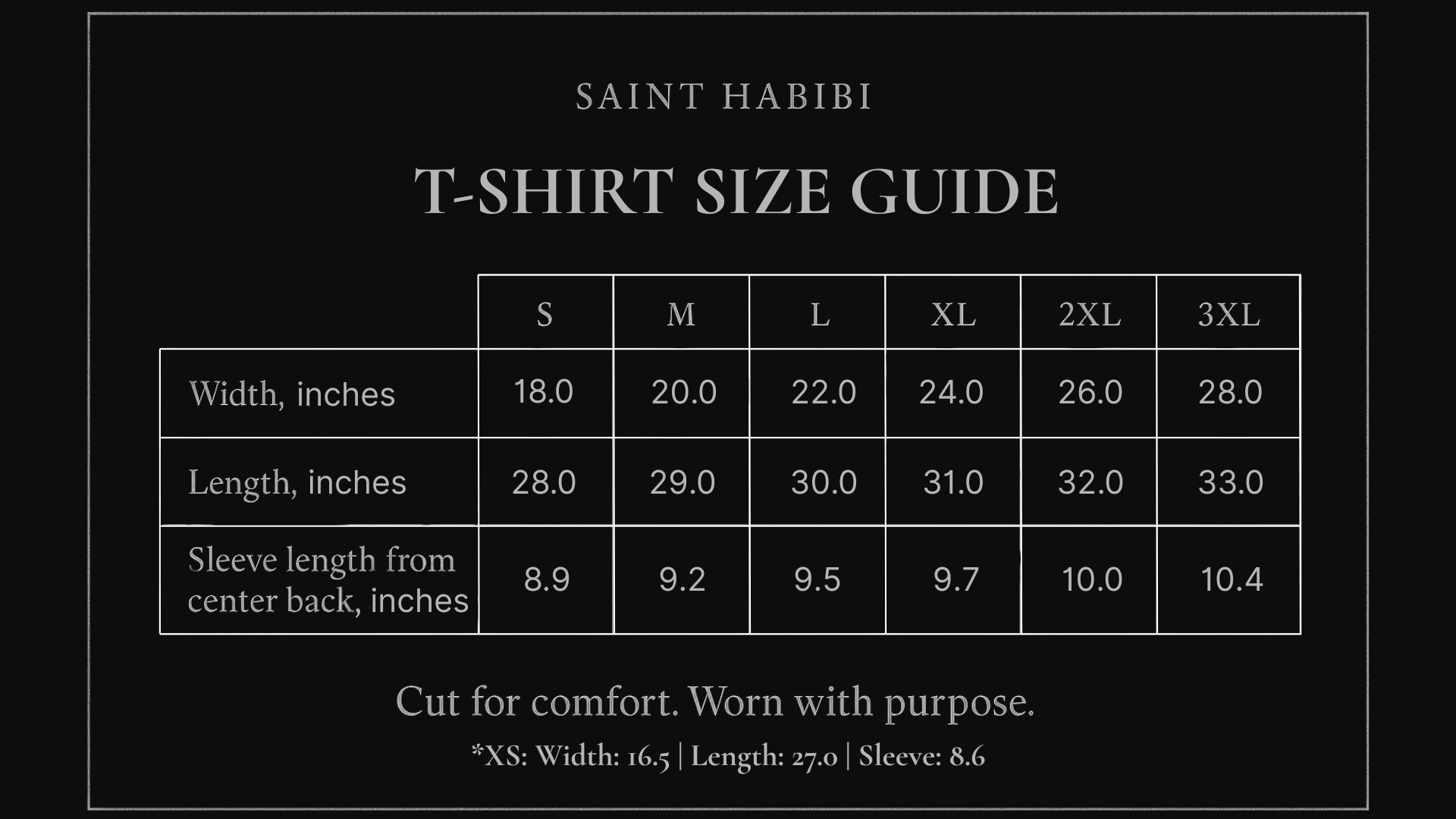 Measurements taken with garment laid flat. Allow for slight tolerance (+/- 0.5 in / 1-2 cm).